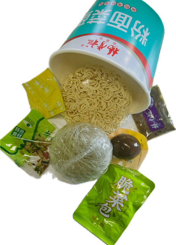 مواد تشکیل دهنده | نودل، ورمیشل، چاشنی، سس، سبزیجات، تخم مرغ طعم دار + لوبیا ترش |